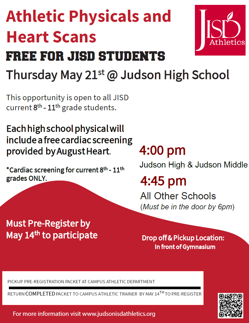Free athletic physicals for the 2026-2027 school year.Please see your Campus athletic trainer to pick up the required forms and schedule your appointment.